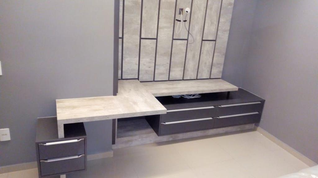 Um dos móveis feitos pelo Renato, que trabalhou como marceneiro no Brasil por oito anos.